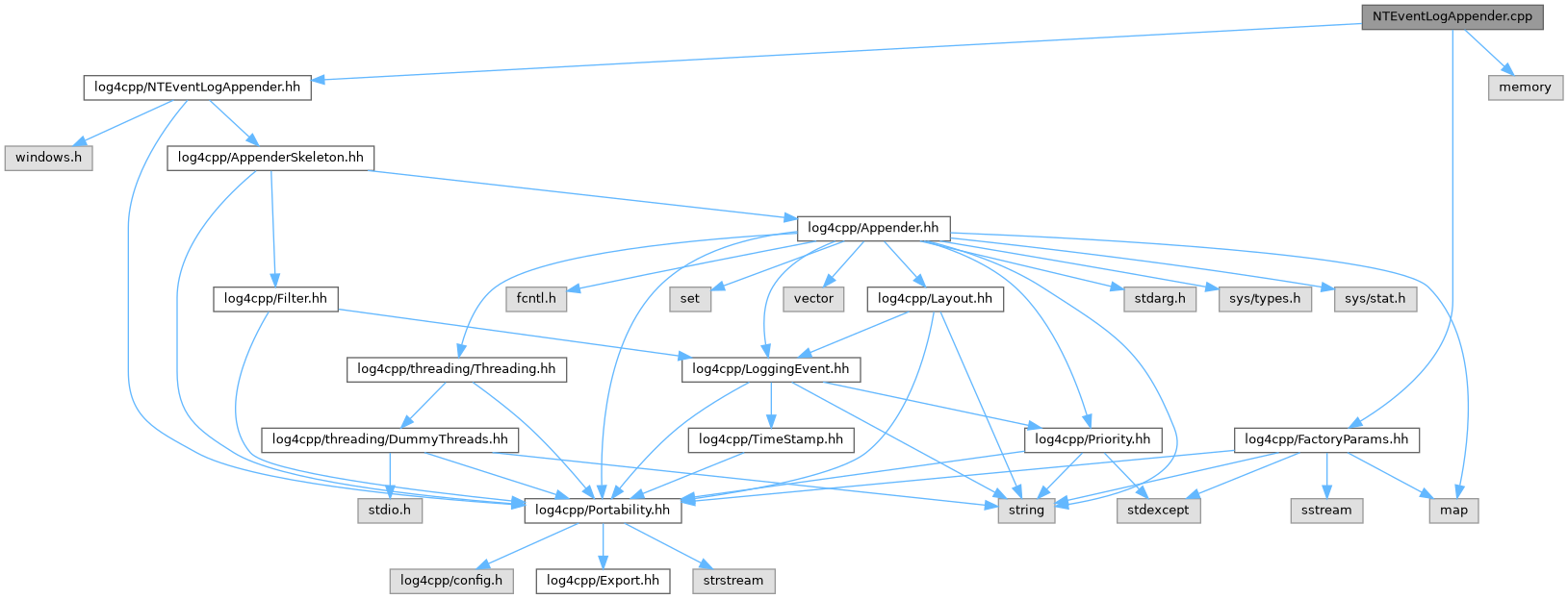 Include dependency graph for NTEventLogAppender.cpp: